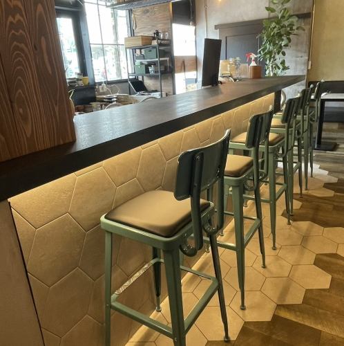 当店の店内は、ドライフラワーが吊るされたオシャレな空間で、自然を感じながらお食事を楽しめます。ハンドメイドの内装が心地よい緑の空間を演出しており、リラックスしたひとときを提供します。